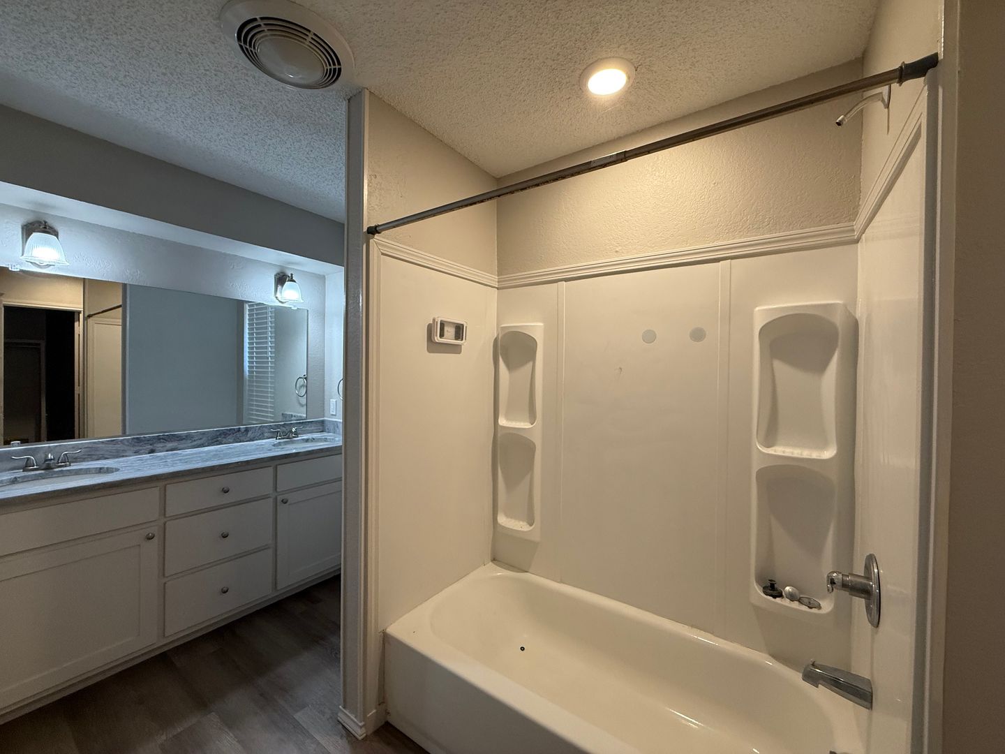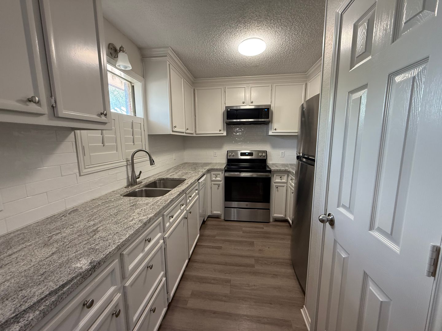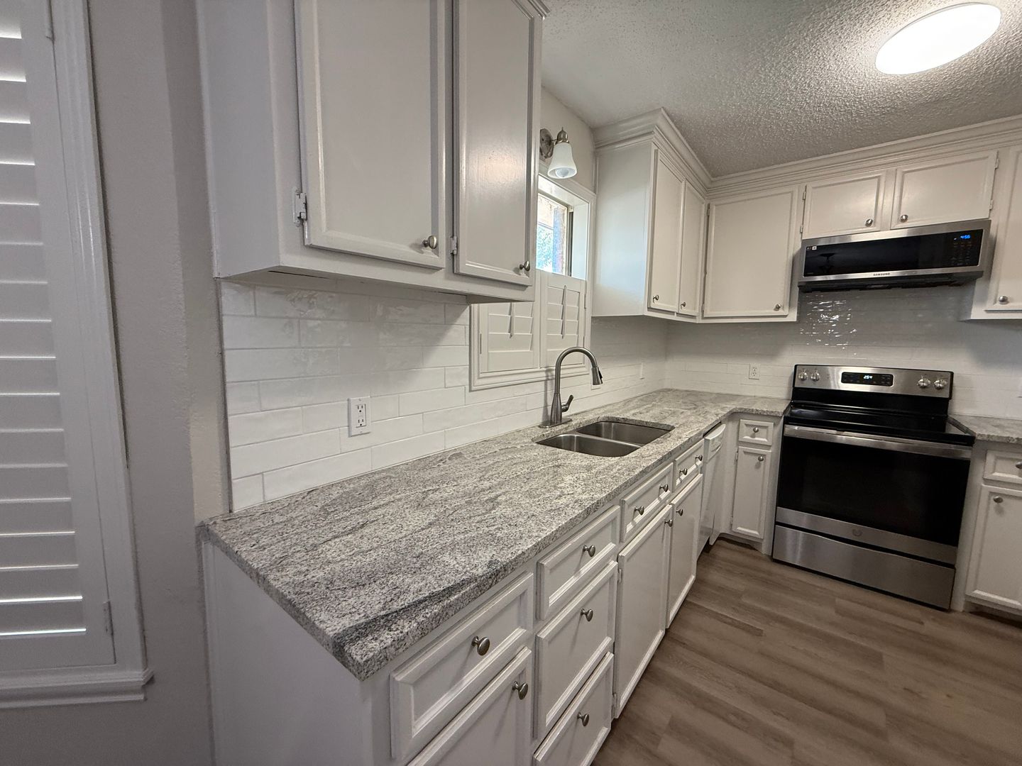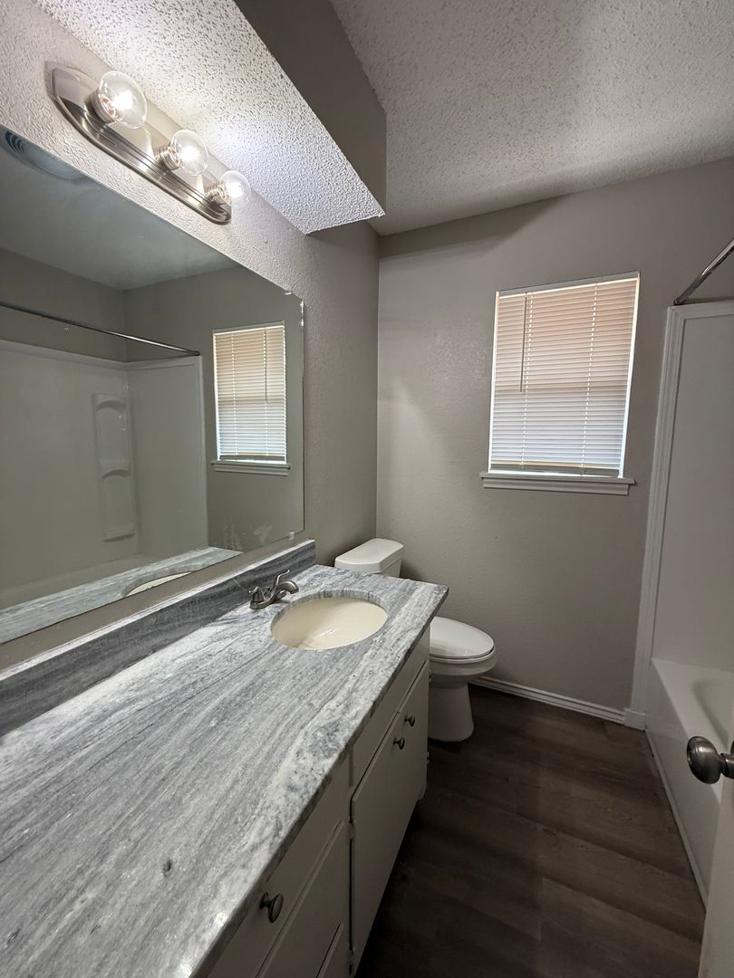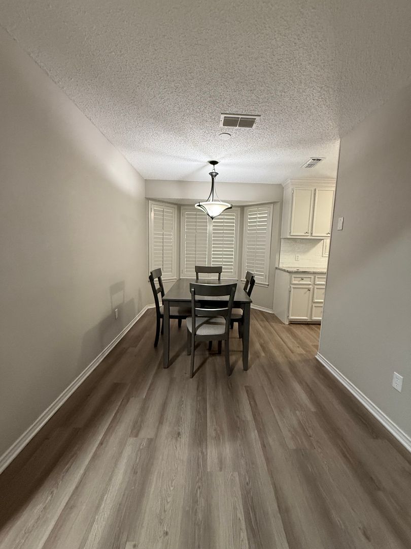 Nicely updated home with nice warm neutral colors throughout. The nicely equipped kitchen is topped off with gorgeous granite countetops and pantry. The secluded primary suite has a nice closet and vinyl planks are continued through it. The guest rooms located on the opposite side of the house with a bathroom. The large shaded backyard is a perfect addition to this home.
